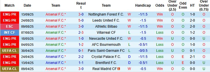 Phong độ thời gian gần đây của Arsenal