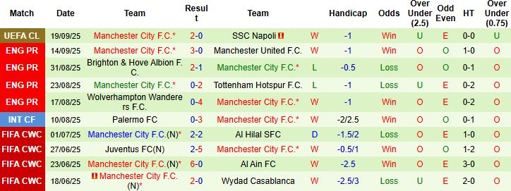 Phong độ thời gian gần đây của Man City