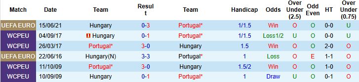 Thành tích đối đầu Hungary vs Bồ Đào Nha