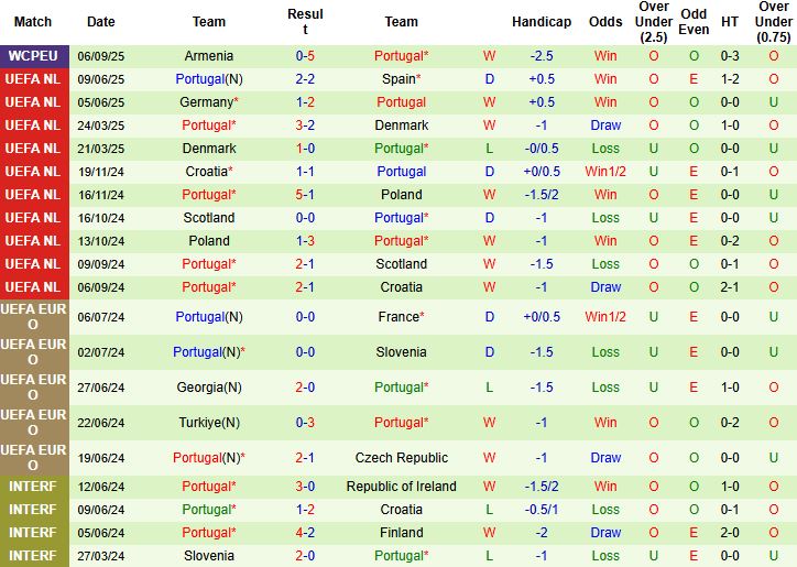 Phong độ thời gian gần đây của Bồ Đào Nha