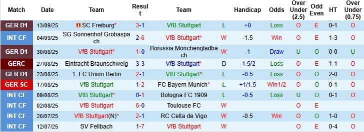 • Phong độ thời gian gần đây của Stuttgart