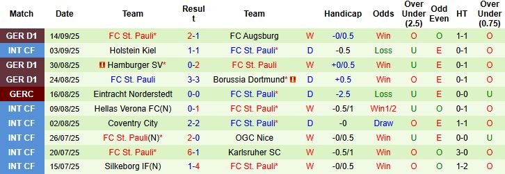 • Phong độ thời gian gần đây của St Pauli